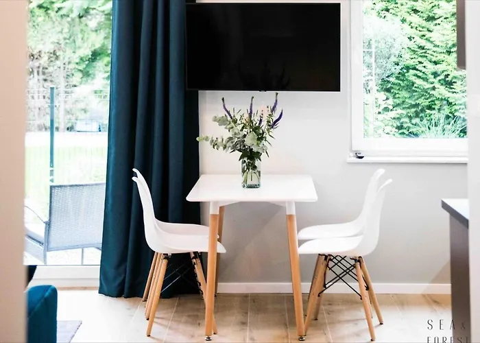 Sea & Forest Apartments 1 Gdynia o powierzchni 42 m^2 położony jest w dzielnicy Orłowo oraz oferuje widok na patio. Hipodrom Sopot i Stadion Bałtyk Gdynia znajdują się odpowiednio w odległości 6 km i prawie 25 min piechotą od apartamentu.